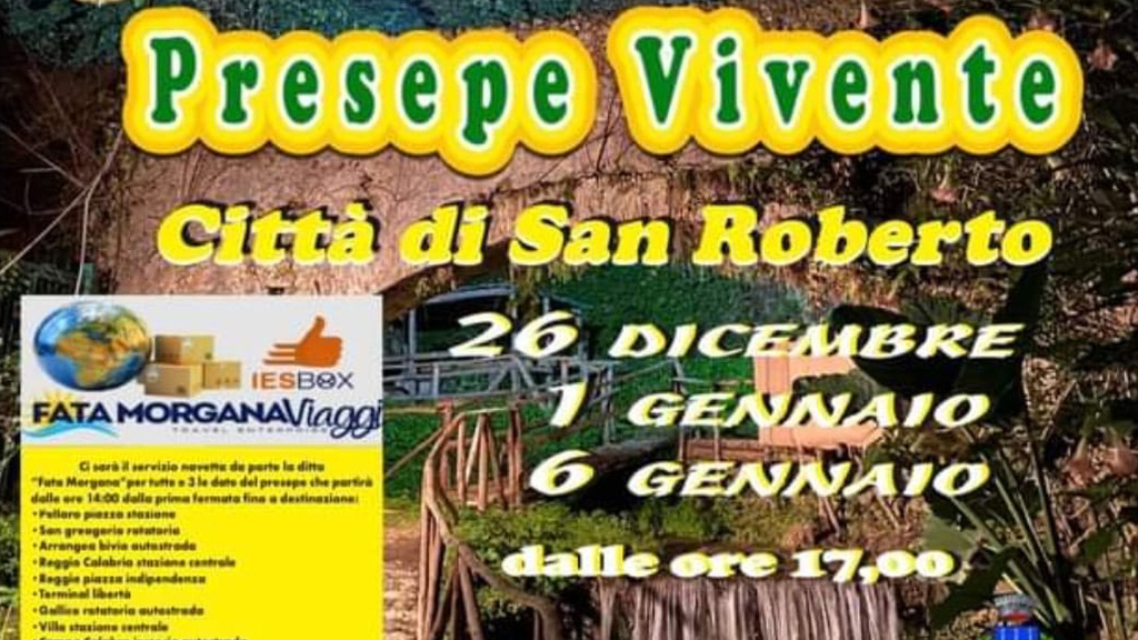 Nella splendida location naturalistica del vallone Santa Tecla, che il paese di San Roberto offre, si svolgerà il rinomato Presepe Vivente nelle date del 26 dicembre 2023, 1 e 6 gennaio 2024 dalle ore 17:00.