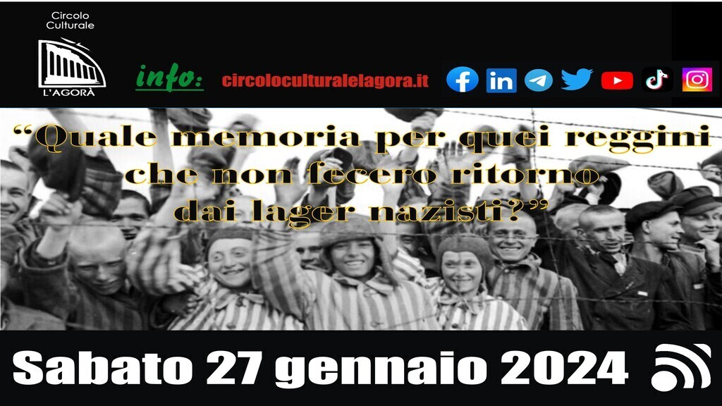 Da oggi sabato 27 gennaio è visionabile sulle varie piattaforme Social Network presenti nella rete, il momento di riflessione, organizzato dal Circolo Culturale “L’Agorà”, sul tema “Quale memoria per quei reggini che non fecero ritorno dai lager nazisti?”. Si tratta di un reportage video, con immagini del periodo, sulle atrocità perpetrate nei confronti di coloro che erano considerati nemici dello Stato come semplici cittadini di idee opposte a quelle governative, come liberali, comuniste, socialiste, socialdemocratiche, Rom, Testimoni di Geova, Ebrei, omosessuali, e individui accusati di comportamenti ritenuti asociali o devianti ed altri gruppi di indesiderabili. Tra il 1933 e il 1945, la Germania Nazista e i loro alleati crearono più di 44.000 campi di concentramento che furono la causa dello sterminio, secondo le stime, di sei milioni di esseri umani. Un triste ed amaro viaggio di non ritorno anche per diversi componenti della comunità reggina coinvolti solo per la loro diversità storico-politica. Al di là delle solite frasi di circostanza, slogans di facciata, che non trovano la dovuta applicazione realtà dei fatti e delle conclusioni, sarebbe quindi opportuno e doveroso ricordare e far ricordare i nomi di quei concittadini per evitare ulteriori limitazioni a chi, in quell’epoca, sacrificò la propria vita per la più grande conquista civile, la Democrazia.