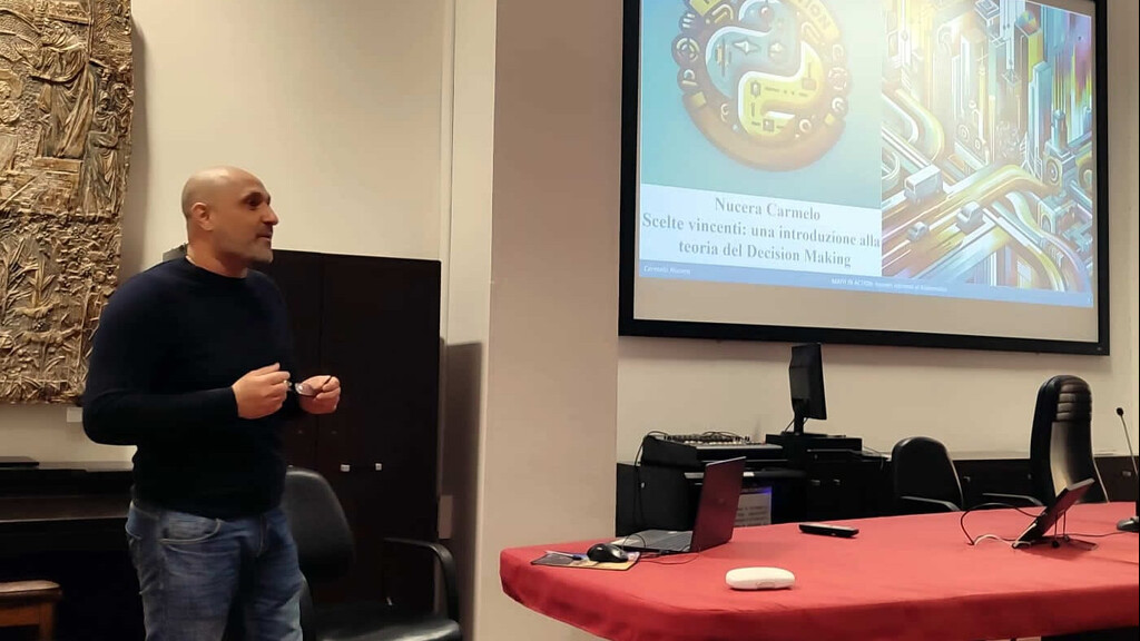 Il recente seminario della serie "Math in Action", intitolato "Scelte vincenti: una introduzione alla Teoria del Decision Making" tenuto dal dott. Carmelo Nucera, si è distinto per il suo notevole successo e l'interesse vibrante che ha suscitato tra i partecipanti. L'evento, che si è svolto lo scorso venerdì 5 aprile presso l'Aula Magna dell'Accademia delle Belle Arti di Reggio Calabria, ha segnato un punto di svolta nel dialogo tra la matematica e le sue applicazioni nel mondo reale, coinvolgendo esperti e appassionati in una discussione profonda e multidisciplinare.