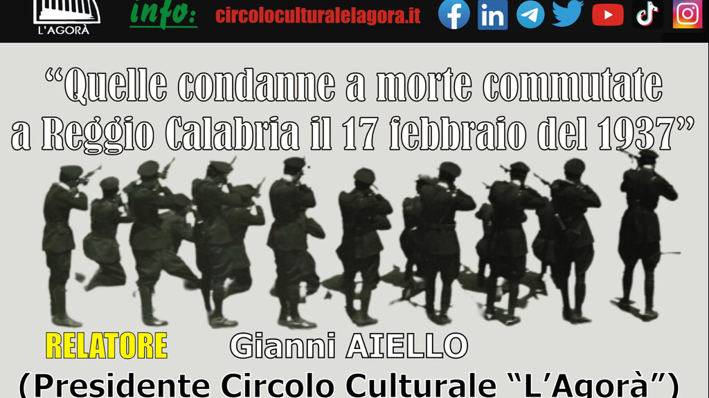 Dopo il primo tentativo di depistaggio, architettato dagli autori del duplice omicidio, gli organi investigativi riuscirono a trovare il bandolo della matassa, smascherando Antonino De Stefano ed a farlo testimoniare contro i suoi complici. La sentenza, emessa dalla Corte d’Assise di Reggio Calabria nell’agosto del 1936, condannava all’esecuzione capitale, tramite fucilazione alla schiena, Francesco Mandalari, Domenico Artuso ed Antonino Destefano, per l’omicidio di Maria Teresa Giulia Ferrante, giovanissima donna che i tre avevano sequestrata, violentata ed uccisa. L’esecuzione dei tre avvenne il 17 febbraio del 1937. Queste alcune delle cifre che saranno oggetto di analisi da parte di Gianni Aiello (Presidente del Circolo Culturale “L’Agorà”). Tenuto conto dei protocolli di sicurezza anti-contagio e dei risultati altalenanti della pandemia di COVID 19 e nel rispetto delle norme del DPCM del 24 ottobre 2020 la conversazione sarà disponibile, sulle varie piattaforme Social Network presenti nella rete, a far data da venerdì 12 aprile.
