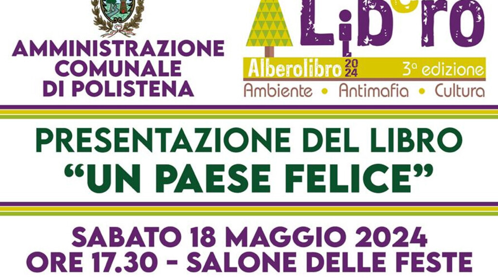 Nel salone delle feste sarà presentato il suo romanzo dal titolo “Un paese felice”, edito da Mondadori
