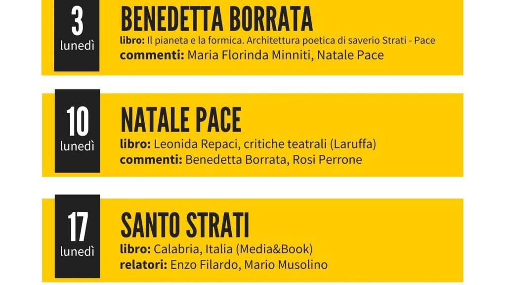 Per l’occasione sono previsti  gl’interventi del Presidente del  Circolo ospitante Ezio Privitera e di Pino Bova per il Rhegium Julii. Seguiranno i commenti di Benedetta Borrata e Rosi Perrone. Le conclusioni saranno tratte dallo stesso autore..