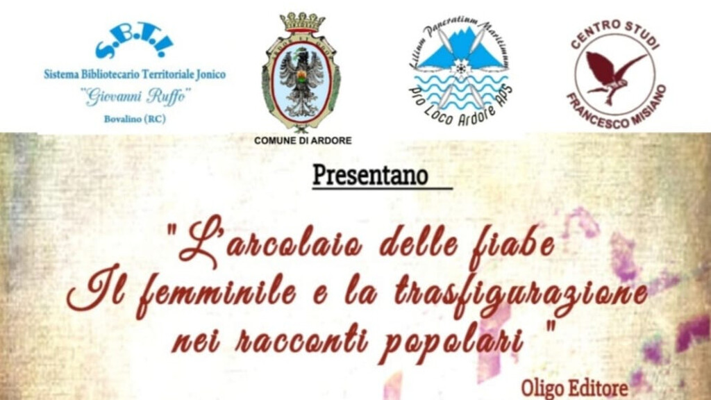 Venerdì 16 agosto alle ore 21.30, presso il Castello Feudale, sito in Piazza Umberto I, ad Ardore Superiore (RC), si terrà la presentazione del saggio, “L’arcolaio delle fiabe. Il femminile e la trasfigurazione nei racconti popolari”, Oligo Editore. Ospite dell’evento lo scrittore, folklorista e mitologo Paolo Battistel. Ad aprire la serata, i saluti istituzionali del sindaco del comune di Ardore, Giuseppe Campisi, seguiranno i saluti del presidente della Pro Loco Ardore, Stefano Priolo, per concludere con il vicepresidente del Centro Studi "Francesco Misiano", Giuseppe Grenci. Dialogano con l’autore, l'assessore alla cultura del comune di Ardore, Rosita Muscatello e il direttore del Sistema Bibliotecario Territoriale Jonico-Bovalino (RC), Antonio Bova.