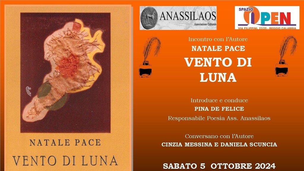 Sabato 5 ottobre a Reggio Calabria è stata presentata la raccolta poetica “Venti di luna” di Natale Pace. Una raccolta suggestiva ed evocativa quella del poeta, saggista e scrittore palmese che parla direttamente al cuore e che attraverso versi espressivi, racconta la Calabria e il legame e l’amore che l'autore nutre per la sua terra.