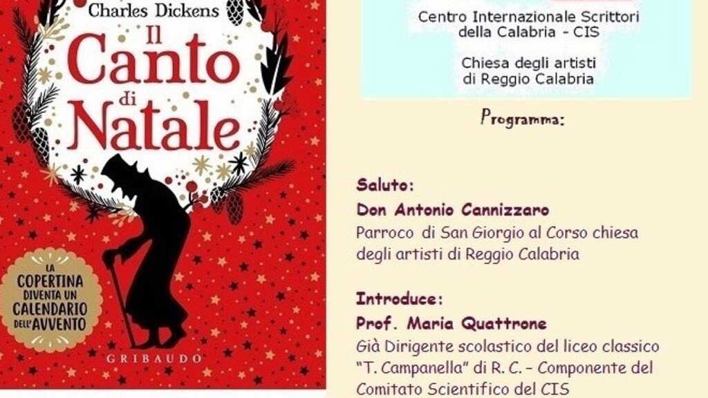 Dopo i saluti di don Antonio Cannizzaro, parroco di San Giorgio al Corso, e di Loreley Rosita Borruto, presidente del Cis della Calabria, introduce la manifestazione, Maria Quattrone, già dirigente scolastico del Liceo Classico “T. Campanella” di Reggio Calabria. Con il contributo di slides relaziona Silvana Comi, docente di Lingua e Letteratura Inglese. "A Christmas Carol" è una novella scritta da Charles Dickens, che narra la storia di Ebenezer Scrooge, un vecchio avaro e misantropo che disprezza il Natale e tutto ciò che rappresenta.
