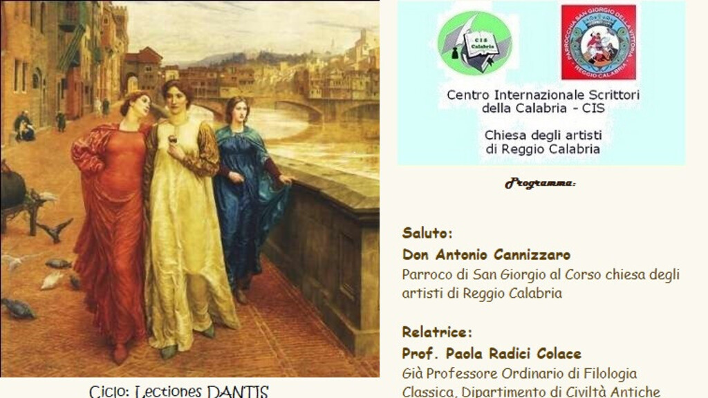 Nell’ambito del ciclo di incontri: Lectiones Dantis, il Centro Internazionale Scrittori della Calabria e la chiesa degli artisti di Reggio Calabria, nel salone della stessa chiesa, giovedì 6 marzo 2025, alle ore 17:30, promuovono il quarto incontro “Le donne nella Divina Commedia e il contesto culturale del Trecento”.