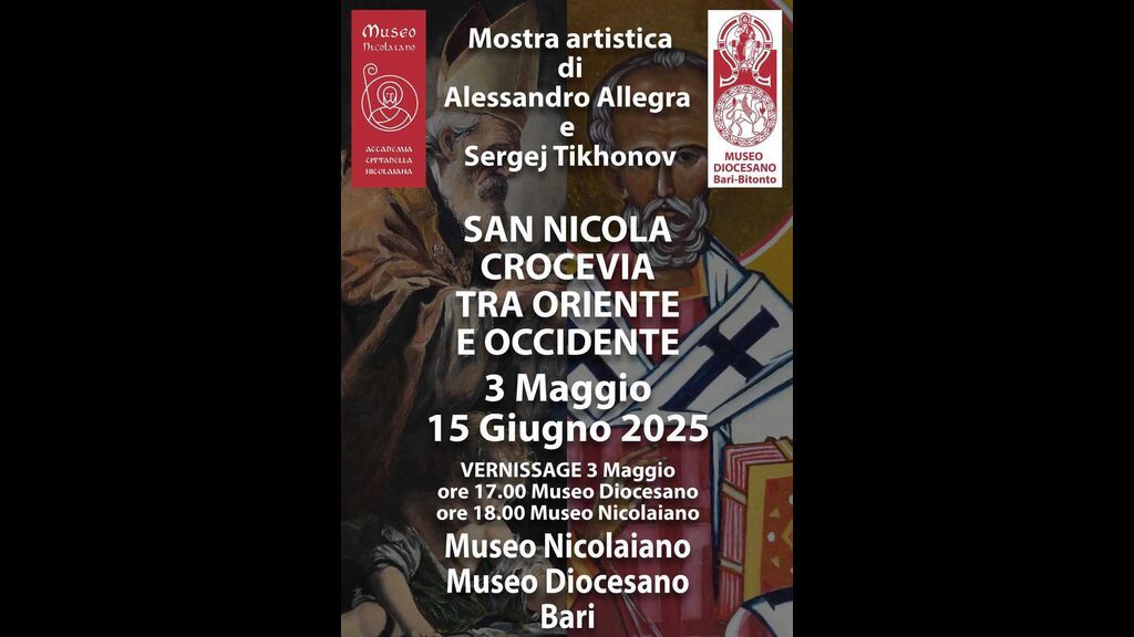 In esposizione quattordici opere, sette per artista, che portano lo sguardo del visitatore ad esplorare il culto cattolico e ortodosso del Santo Patrono di Bari, da sempre simbolo dell’unione dei due mondi. L’evento che si colloca nel mese di maggio dedicato ai festeggiamenti cittadini del Vescovo di Myra, è un omaggio all'universalità del Santo diventato tra i più popolari del cristianesimo e protago.