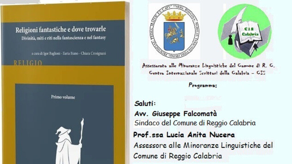 “Religioni e miti nell’immaginario fantastico contemporaneo, divinità ed eroi dell’antichità nella fantascienza e nel fantasy” è il titolo della manifestazione di lunedì 12 maggio 2025, alle ore 17:00, presso il Salone dei Lampadari “Italo Falcomatà” del Palazzo del Comune di Reggio Calabria, promossa dal Centro Internazionale Scrittori della Calabria con il patrocinio dell’assessorato alle Minoranze Linguistiche del Comune di Reggio Calabria.