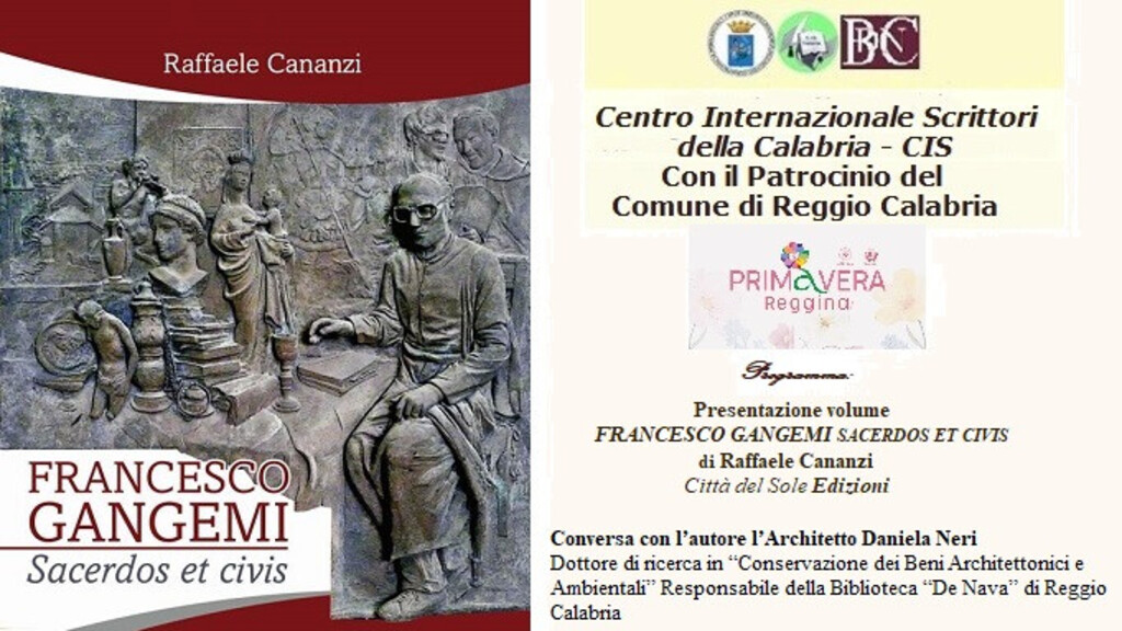Martedì 3 giugno 2025, alle ore 16:45 presso la Biblioteca Villetta “P. De Nava” di Reggio Calabria, nell’ambito della “Primavera Reggina 2025”, il Centro Internazionale Scrittori della Calabria (CIS), con il patrocinio del comune di Reggio Calabria, presenta il volume “Francesco Gangemi Sacerdos et Civis” di Raffaele Cananzi – Città del Sole Edizioni.