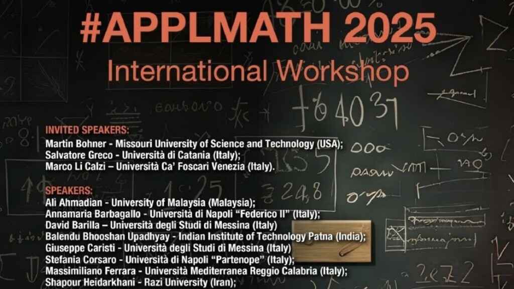 Dal 9 all’11 giugno 2025 presso il Dipartimento di Giurisprudenza, Economia e Scienze Umane (Cittadella Universitaria) e presso la sala dell’Accademia Peloritana dei pericolanti dell’Università degli Studi di Messina, si terrà il Workshop internazionale “#APPLMATH2025”, evento di rilievo scientifico dedicato agli sviluppi più recenti delle teorie matematiche applicate alle Scienze Economiche, Finanziarie, Attuariali e Sociali.