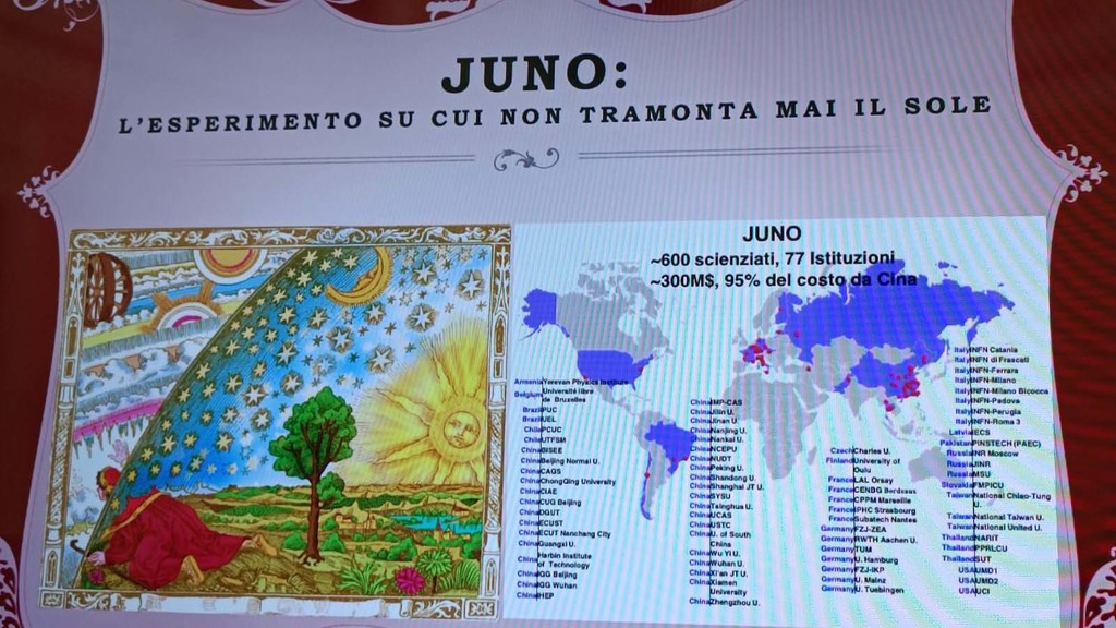 Nella sala “Perri” di Palazzo Alvaro, la fisica di fama internazionale, Lucia Votano, si è soffermata sul Jiangmen Underground Neutrino Observatory, il cosiddetto “Juno”, un esperimento di fisica a cui partecipano oltre 600 scienziati e 70 istituzioni fra università e istituti di ricerca. La professoressa Votano ha parlato dell’esperienza che la vede coinvolta nel pool italiano, costituito da 7 università e l’Istituto Nazionale di Fisica Nucleare, in un progetto da 300 milioni di dollari rappresentato da un enorme laboratorio sotterraneo per studiare a fondo il neutrino, una particella subatomica di cui, ancora oggi, si conosce troppo poco.