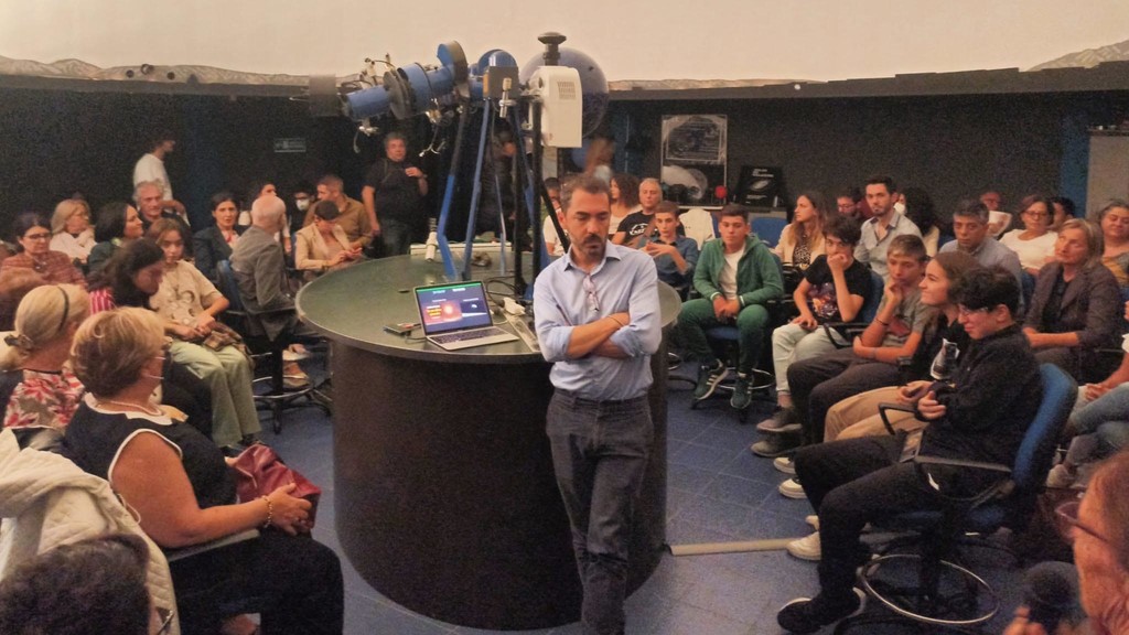 In un Planetarium Pythagoras colmo in ogni ordine di posti l'astrofisico di fama internazionale Amedeo Balbi riesce a catturare l'attenzione del numerosissimo pubblico, composto prevalentemente da giovani, articolando con grande maestria l'argomento senza mai annoiare.