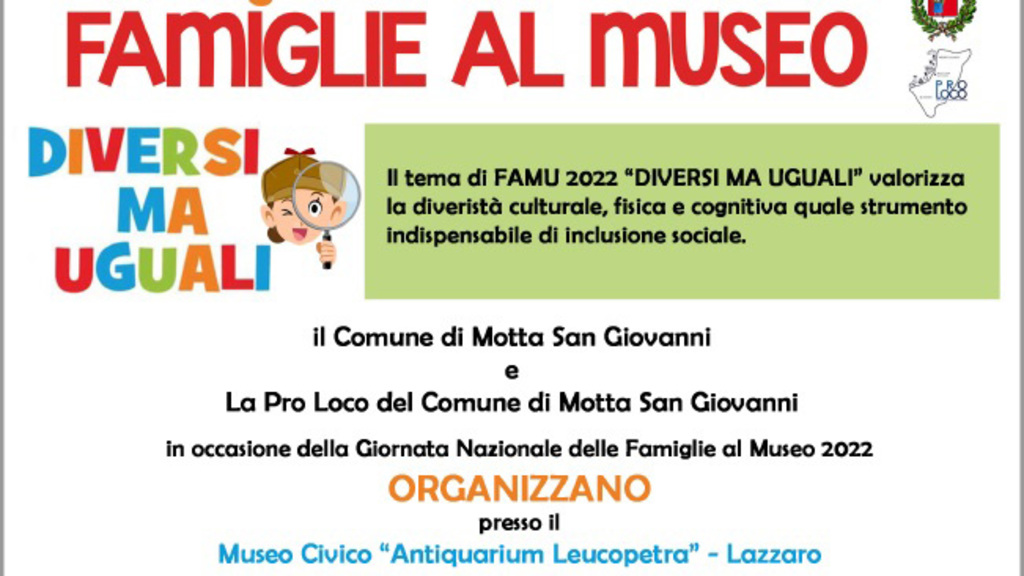L’Amministrazione comunale di Motta San Giovanni aderisce alla Giornata Nazionale delle Famiglie al Museo promuovendo alcune attività presso l’Antiquarium Leucopetra di Lazzaro.