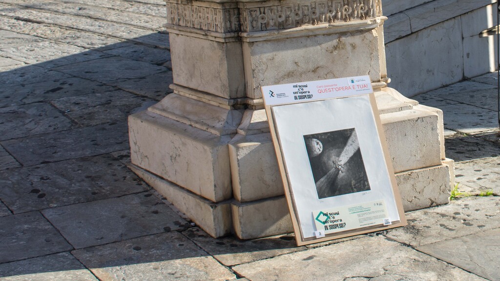 "Mi scusi, c'è un'opera in sospeso?" è il titolo del progetto appena lanciato dall’Accademia di Belle Arti di Reggio Calabria, che ha preso il via nel pomeriggio del 3 novembre attraverso l’installazione pubblica di opere d’arte nel tessuto urbano della Città. Il lancio è stato preceduto dalla conferenza stampa di presentazione, tenutasi in mattinata nell’Aula Magna alla presenza del Direttore Prof. Piero Sacchetti, della Dr.ssa Calabrò Irene Vittoria, Assessore Programmazione Finanziaria e Bilancio Cultura e Turismo del Comune di Reggio Calabria, dei Proff. Salvo Borzì e Marcello Francolini che hanno curato il progetto, e dei Proff. Vincenzo Molinari e Francesco Scialò che hanno seguito la realizzazione delle stampe degli allievi-artisti.
