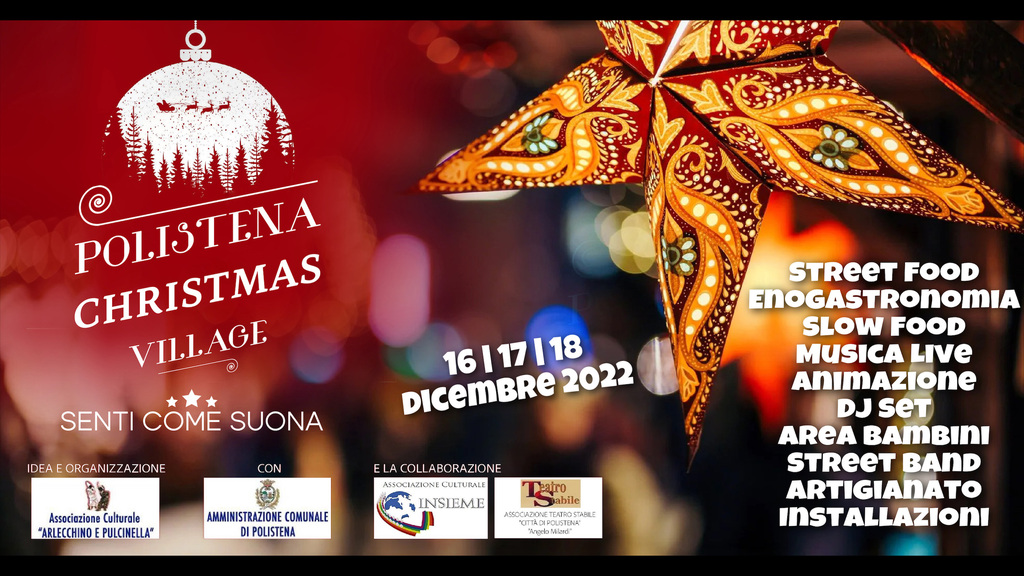 Sta arrivando il “Polistena Christmas Village - Senti come Suona” che si terrà dal 16 al 18 dicembre 2022 nel cuore del centro storico. Ideato e Organizzato dall’Associazione Culturale “Arlecchino e Pulcinella” con l’Amministrazione Comunale di Polistena e la collaborazione delle Associazioni “Insieme” e “Teatro Stabile Città di Polistena - Angelo Milardi” e il supporto delle attività commerciali del territorio. È quanto scritto in un comunicato della stessa associazione.