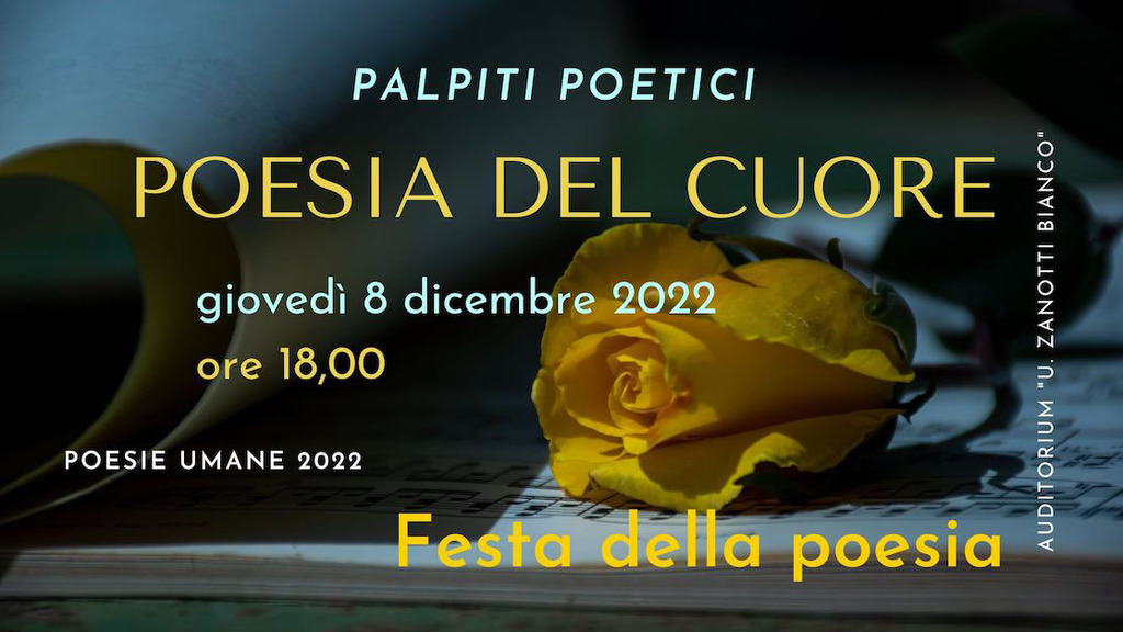 Un incontro tra persone che hanno la stessa visione della vita e cercano negli altri la genuina forma di conoscenza e amicizia sgombra dai condizionamenti che spesso portano a confliggere piuttosto che amare. L’ingresso è libero e, oltre alla partecipazione di poeti già affermati, l’evento è aperto a tutti coloro che intendono declamare una loro poesia o semplicemente assistere a una “festa” che apre i cuori ai sani sentimenti che sono alla base di una serena convivenza civile.