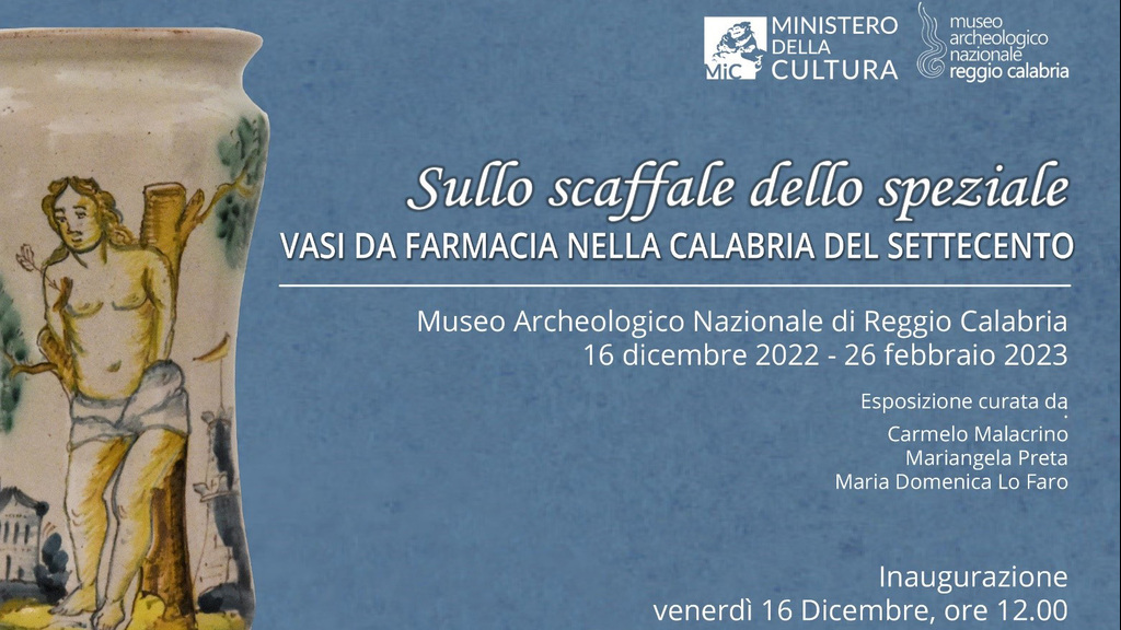 Alle ore 11.00, nel suggestivo spazio di Piazza Paolo Orsi, torneranno le cosiddette “Mostre d’accoglienza”, con le quali il MArRC omaggia tutti i visitatori al loro ingresso al Museo. Il tema di questa nuova esposizione temporanea sarà “Sullo scaffale dello speziale. Vasi da farmacia nella Calabria del Settecento”, curata dal direttore Malacrino insieme all’archeologa e direttrice del Polo Museale di Soriano Calabro, Mariangela Preta, e all’archeologa e funzionario amministrativo del MArRC, Maria Domenica Lo Faro. Un percorso che, con sette vetrine e tanti oggetti normalmente conservati nei depositi, offrirà la possibilità di approfondire la conoscenza di documenti relativi a usi e pratiche farmaceutiche nella Calabria del XVIII e XIX secolo.