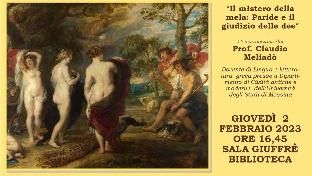 mistero della mela: Paride e il giudizio delle dee” che si terrà giovedì 2 febbraio alle ore 16,45 presso la