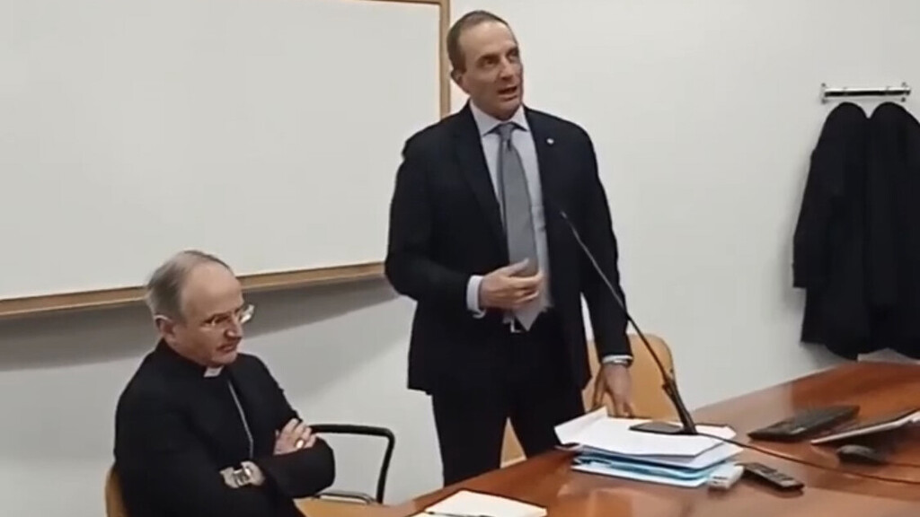 «Grazie al Rettore e ai professori e anche a voi - afferma il Vescovo -. Perché sono emozionato? Per me è una novità qui. Da Vescovo di questa città dico che è fondamentale che ci incontriamo, il resto viene in avanti. Dico che sono emozionato perché per me è una prova, non per voi, ma per capire se so ascoltare».