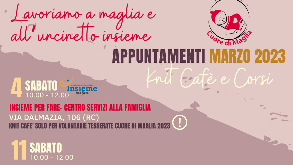 Dalmazia 106 (RC). Knit cafè riservato solo alle volontarie di Cuore di Maglia Tesserate