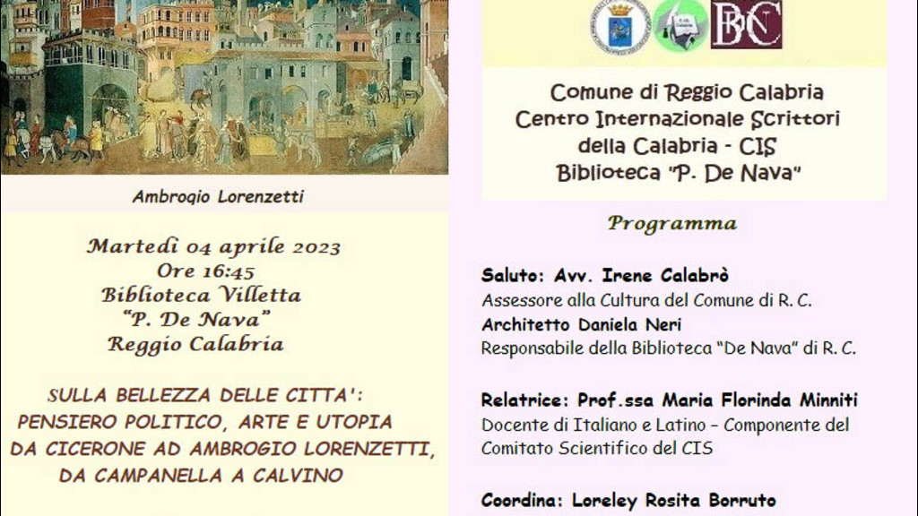 Cicerone a Ambrogio Lorenzetti, da Campanella a Calvino”. Dopo i saluti di