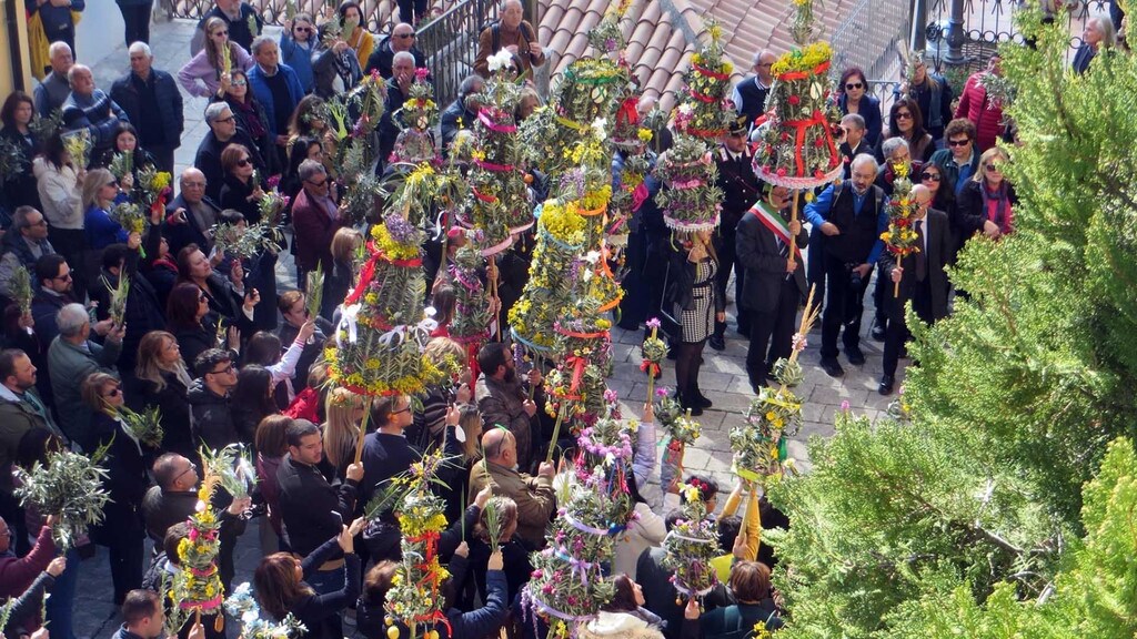 processione per le vie del paese, benedizione degli Ulivi e delle Palme e dei