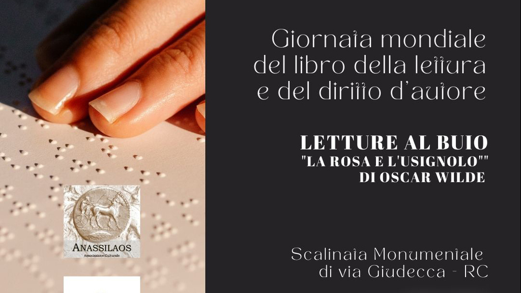 In occasione della Giornata mondiale del libro, il 23 aprile alle 19:30, l’Associazione Aps Comunità patrimoniale Scalinata Monumentale di Via Giudecca, insieme all’associazione culturale Anassilaos e all’Associazione Nazionale Privi della Vista ed Ipotevedenti (Anpvi) organizza “Letture al buio”, un evento che mira a promuovere la lettura in ogni sua forma, anche con contesto braille, e il diritto d’autore.