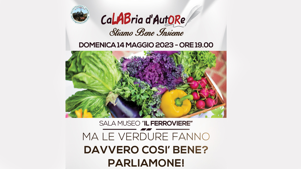 All'interno della rassegna Calabria d'Autore, tornano gli appuntamenti dedicati alla salute ed alla corretta alimentazione con il dibattito: "Ma le verdure fanno davvero così bene?" che si terrà domenica 14 maggio, ore 19.00, presso la sala museo "Il Ferroviere", all'interno della Stazione FS di S. Caterina, a Reggio Calabria. È quanto si legge in una nota dell'associazione " Incontriamoci Sempre".