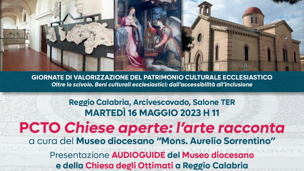 Il Museo diocesano di Reggio Calabria partecipa all’iniziativa nazionale presentando gli esiti di un Pcto (Percorso Competenze Trasversali e Orientamento) condiviso, ai sensi di apposita Convenzione tra Scuola e Arcidiocesi, con gli studenti del Liceo Scientifico Volta di Reggio Calabria e dei Licei Classico e Linguistico Nostro di Villa San Giovanni.