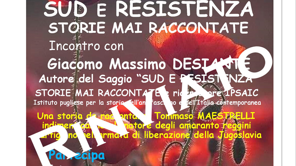presentazione, prevista per domani 20 maggio, di "Sud e Resistenza