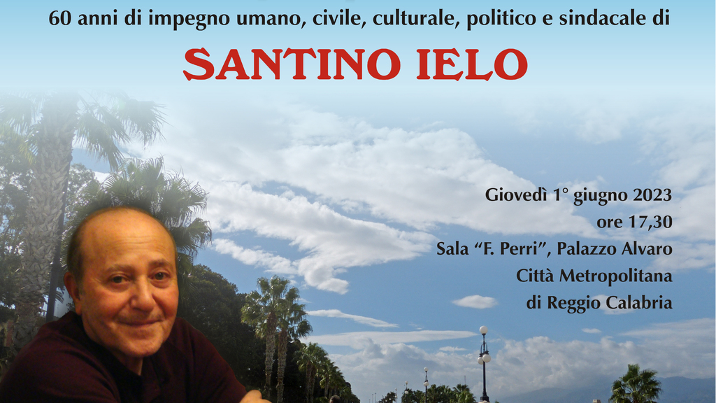 "Da qualche mese Santo Ielo (per tutti Santino), non è più con i suoi familiari, non è più con noi; ha concluso il suo impegno, durato sessanta anni, per “cambiare il mondo”, da giovane studente del Liceo Classico Campanella, fino all’ultima impresa, la fondazione dell’associazione venticinqueaprile, nata nel dicembre del 2021". Questo l'incipit della nota di AMPA venticinqueaprile relativa all'evento del ricordo di Santino Ielo che. in sinergia con la Città Metropolitana, il Comune di Reggio Calabria e la Fondazione “Italo Falcomatà”, si svolgerà giovedì 1° giugno 2023, alle ore 17:30, presso la Sala “F. Perri” di Palazzo Alvaro della Città Metropolitana.