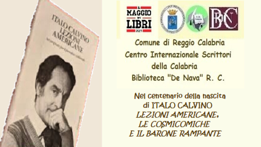 Nell’ambito del “Maggio dei libri 2023” che celebra l’importanza della lettura e il valore sociale dei libri, martedì 30 maggio, alle ore 16:45, presso la Biblioteca Villetta “P. De Nava” di Reggio Calabria, la Città di Reggio Calabria, il Centro Internazionale Scrittori della Calabria e la stessa Biblioteca, nel centenario della nascita di Italo Calvino promuovono la conversazione sulle opere: