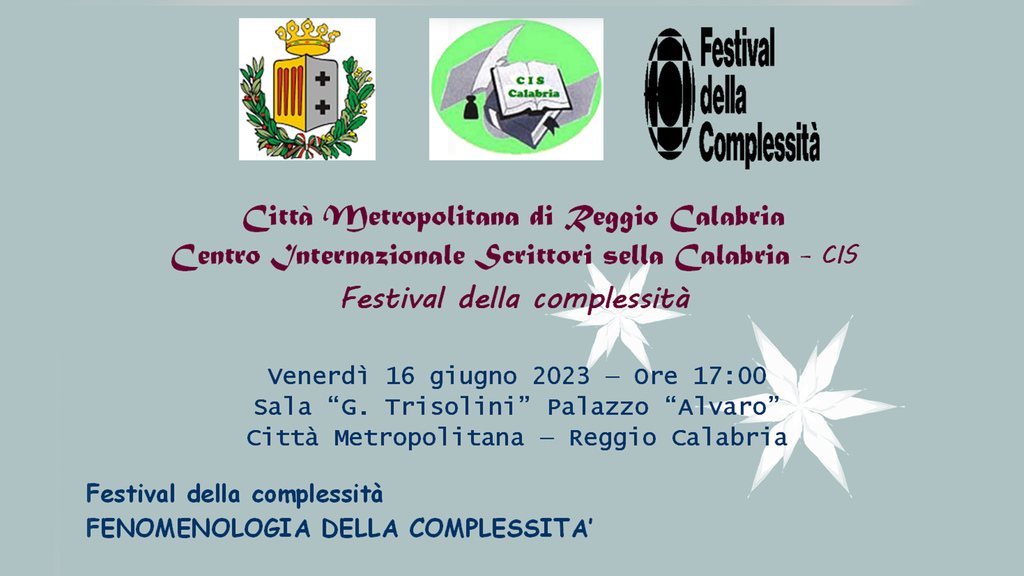 Venerdì 16 giugno, presso la sala “G. Trisolini” di Palazzo Alvaro, sede della Città Metropolitana di Reggio Calabria, alle ore 17:00, promossa dalla Città Metropolitana e dal Centro Internazionale Scrittori della Calabria, si svolgerà la tavola rotonda “Fenomenologia della complessità” con la quale si cerca di affrontare il tema dei «Mondi possibili» dal punto di vista della fenomenologia, indagando sul rapporto tra scienza, filosofia e tecnologia nel «Pluriverso» della globalizzazione. A darne notizia, un comunicato del CIS della Calabria.