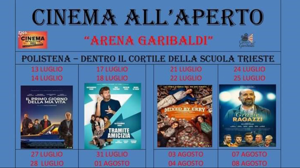 Il cinema è l’insieme delle arti che spazia dalla fantasia, all’informazione, alla divulgazione del sapere. Ma il cinema è anche una passione e a Polistena questa passione è alla base della storia del Cine teatro Garibaldi e dalla Famiglia Laruffa. Generazioni di giovani sono cresciuti con gli spettacoli svoltosi nel Cinema Garibaldi dove “ci siamo commossi, abbiamo gioito e abbiamo pianto” con pellicole che hanno fatto la storia del cinema e della cultura italiana. Gaetano Laruffa, erede di questa grande famiglia di gestori del cinema polistenese, potrebbe raccontare la “sua vita e quella del Padre per la passione del Cinema”. “Abbiamo tenuto duro - ha dichiarato Gaetano - e siamo una delle poche realtà resistenti perché abbiamo un pubblico affezionato e al quale non abbiamo voluto far mancare i nostri spettacoli in questa estate 2023”. La rassegna del cinema all’aperto, all’interno del cortile della scuola Trieste, al centro della Città, anche quest’anno vuole portare il cinema agli appassionati. La rassegna di 10 film che affronta tematiche diverse e di diversi autori e ha un costo a film simbolico, perché, come ha dichiarato Laruffa, l’importante è “non far mancare questo momento di svago e di impegno al nostro pubblico”. Si parte il 13 luglio, alle ore 21.30 con il film “Il primo giorno della mia vita” di Paolo Genovese, per chiudere con il film “AIR-La storia del grande salto” di Ben Affleck, il 12 agosto.