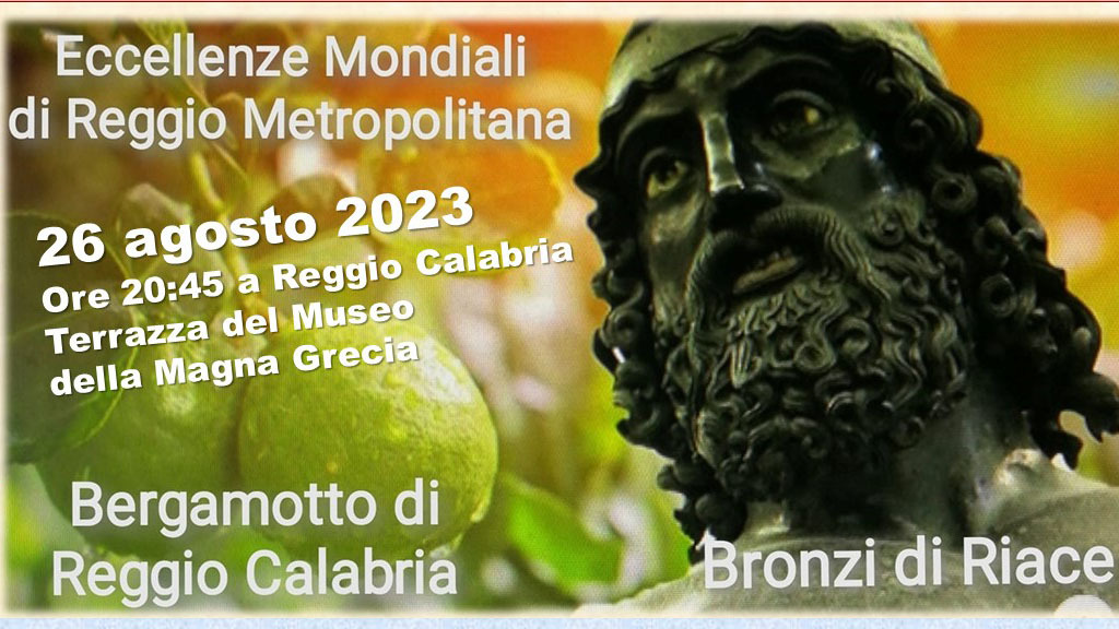 Sabato 26 agosto a Reggio Calabria, alle 20,45 nella magnifica terrazza del Museo Archeologico Nazionale della Magna Grecia, si svolgerà il vii incontro tra le due eccellenze mondiali di Reggio Città Metropolitana. L'evento - riporta una nota - è organizzato dalla Direzione del Museo, dal Cis Calabria, dal Comitato per il Bergamotto di Reggio Calabria e da CONPAIT.