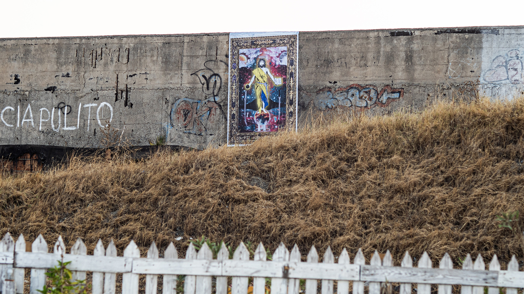 Giorno 26 agosto 2023, sui muri dell’iconica spiaggia “La Sorgente” della Città di Reggio Calabria, compare la nuova opera di critica sociale dell’artista reggino LBS (aka. Bruno Salvatore Latella), già presente in forma di Street Art presso la Placa George Orwell di Barcelona, dal titolo: L’inverno del Demiurgo (Demiurge’s Winter), di modeste dimensioni (200 x 150 cm). Lo rende noto un comunicato dell'artista.
