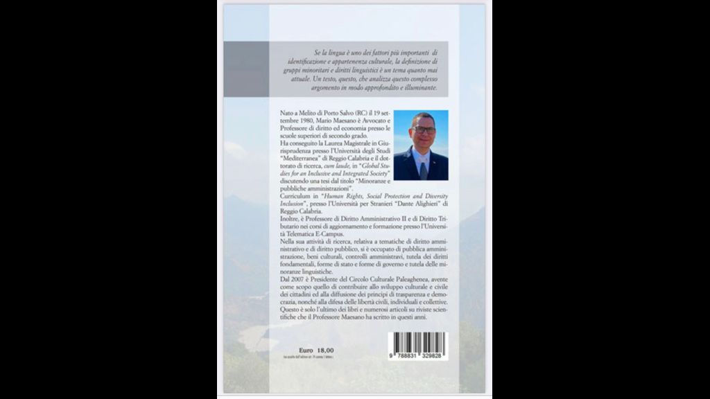 È stato pubblicato il 2 agosto scorso il libro: “Modelli teorici delle minoranze linguistiche e il sistema di tutele delle pubbliche amministrazioni” edito da Ephigraphia di Mario Maesano, avvocato e Professore di diritto ed economia presso le scuole superiori di secondo grado. Inoltre, è Professore di Diritto Amministrativo II e di Diritto Tributario nei corsi di aggiornamento e formazione presso l'Università Telematica E-Campus. Questo è solo l’ultimo dei libri e numerosi articoli su riviste scientifiche che il Professore Maesano ha scritto in questi anni.