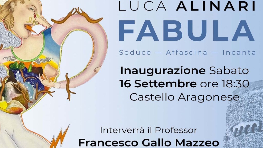 Si terrà domani sabato 16 settembre alle ore 18.30 al Castello Aragonese di Reggio Calabria l'inaugurazione della mostra antologica "Fabula - Seduce-Affascina-Incanta”, che ripercorre l’iter artistico di Luca Alinari.