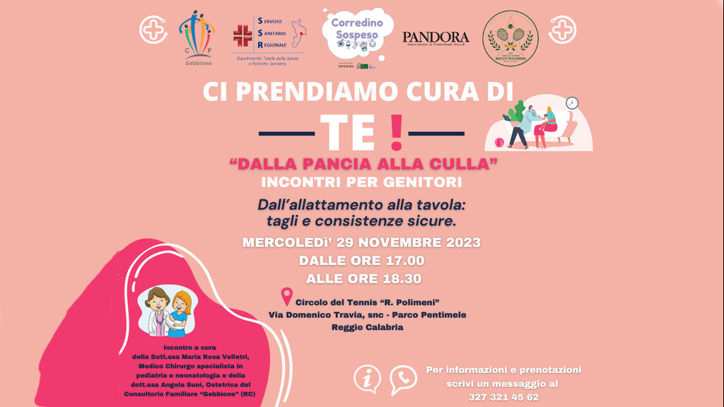 Torna la seconda edizione del progetto “Ci prendiamo cura di te”, ideato dall’Associazione di Promozione Sociale “Pandora” che da anni, con il progetto permanente “Corredino Sospeso”, si occupa di sostegno alla genitorialità con molteplici attività. Questa seconda edizione è in collaborazione con il coordinamento dei consultori familiari dell’ASP di Reggio Calabria ed inizia con una serie di incontri, gratuiti, “dalla pancia alla culla” dedicati a genitori con bimbi da 0 a 4 anni, futuri genitori e anche nonni.