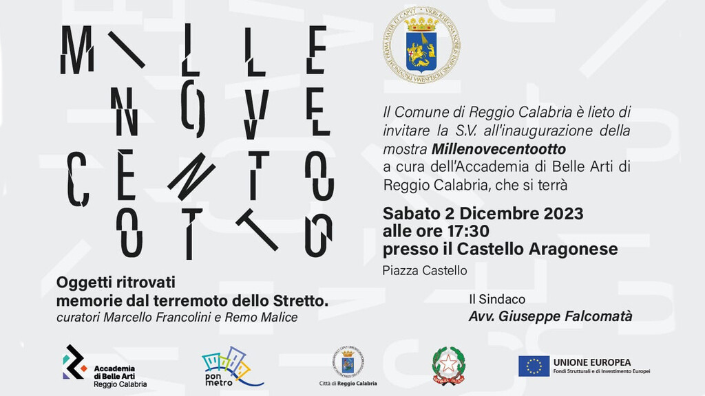 E' in fase di allestimento presso il Castello Aragonese di Reggio Calabria "Millenovecentootto", la mostra che punta alla valorizzazione dei reperti riemersi dopo il terribile terremoto che il 28 dicembre del 1908 sconvolse la Città dello Stretto.