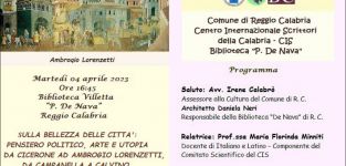 L'incontro si svolgerà venerdì 31 marzo 2023, alle ore 17:00, presso il Palazzo della Cultura “Pasquino Crupi" di Reggio Calabria.