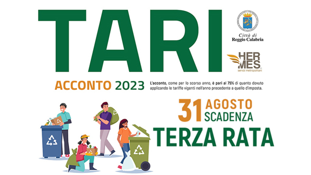 Hermes Servizi Metropolitani, ricorda ai gentili contribuenti che giorno 31 Agosto c.m. scade la terza rata dell'acconto Tari 2023. Questo l'avviso della società in house del Comune di Reggio Calabria.