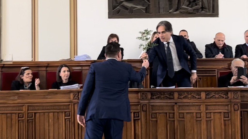 “E la compravendita delle poltrone è soltanto l’ ennesima vergogna alla quale la città ha dovuto assistere, perché non si può definire diversamente una situazione come quella che ha dovuto subire il Sindaco durante lo scorso consiglio: una mortificazione da parte del suo stesso partito, tanto che, a fine di quello stesso consiglio, il Sindaco non ha risposto alle nostre domande. E cosa avrebbe dovuto dire, che stanno giocando a braccio di ferro per un posto in più in Giunta?” conclude così Milia il suo intervento, prima della consegna del ramo al Sindaco.