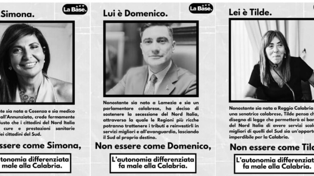 "A questi ragazzi ricordo che per la “questione merdionale” si dibatte da una vita e mai nessuno è riuscito a risolvere il problema ed il Sud negli anni ha sempre aumentato il divario con il Nord. Ora che si cerca di affrontare la difficile ed irrisolta situazione, voluta dalla sinitra nel 2001, si formano barricate che non potranno che aumentare il disastro attuale. La sinistra, che ha tanti deputati e senatori in Parlamento, deve utilizzarli per rettificare eventuali errori ed integrare al meglio la norma che ha voluto la stessa. Il resto è qualcosa di inconsulto - prosegue Saccomanno -. E, comunque, dimostra la mancanza di capacità politica e di dialogo corretto tra istituzioni. Inserire in un pseudo manifesto funesto le foto dei senatori e dei deputati, oltre che del presidente della Giunta Regionale, è un qualcosa di ignobile. La Lega condanna tali atteggiamenti che sprigionano solo odio e si pone accanto a queste persone per bene che stanno lavorando per il bene del proprio territorio, che è stato distrutto proprio dall’incapacità della sinistra di amminitrarlo in oltre 10 anni, nel quali sono stati nei governi che si sono succeduti nel tempo. A Simona Loizzo, a Domenico Furgiuele, a Tilde Minasi, a Roberto Occhiuto, a Mario Occhiuto, a Wanda Ferro, a Fausto Orsomarso ed a tutti coloro che hanno sostenuto l’Autonomia Differenziata la piena solidarietà della Lega e una forte condanna per tali condotte inverosimili e che non appartengono ad una democrazia ed a un dialogo sereno e di spessore" - così conclude il commissario regionale della Lega in Calabria.