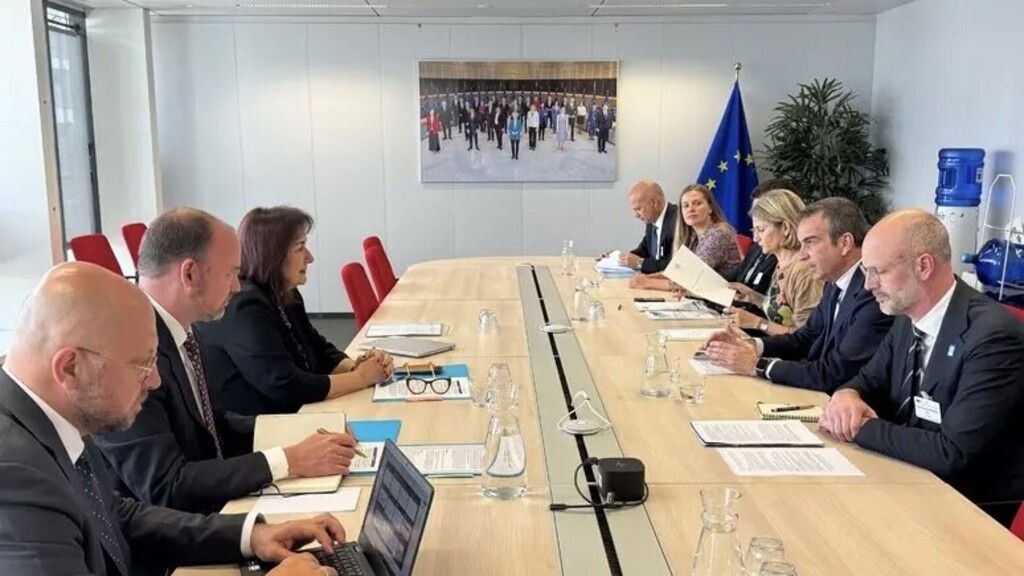 Il presidente della Regione Calabria, Roberto Occhiuto, oggi e domani a Bruxelles per la seduta plenaria del Cominato delle Regioni, ha incontrato nella giornata odierna - in qualità di presidente della Commissione intermediterranea della Conferenza delle Regioni periferiche marittime e di governatore di un'importante Regione italiana - il commissario europeo per il Mediterraneo, Dubravka Šuica, e il commissario europeo per la Migrazione e gli affari interni, Magnus Brunner.