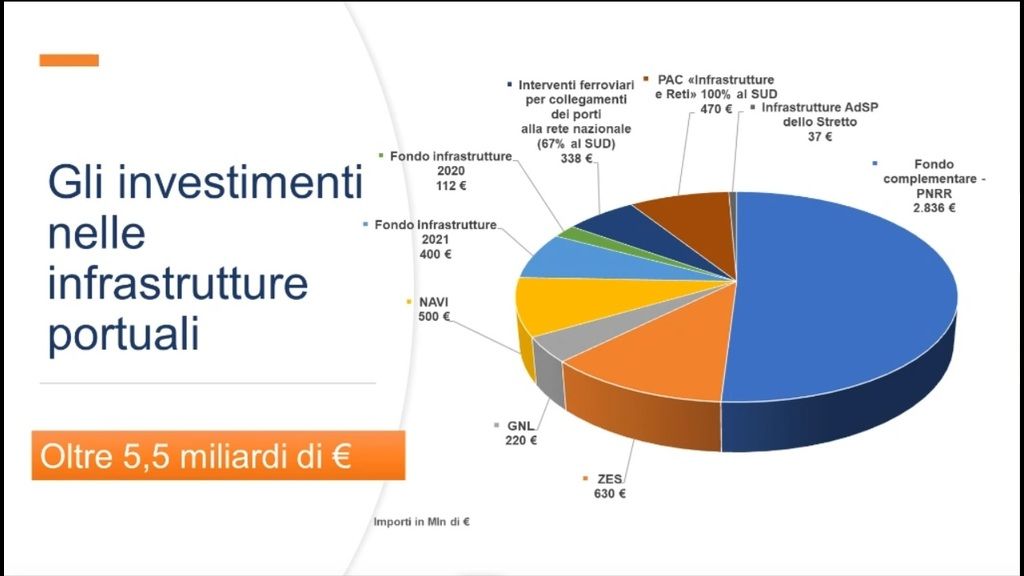 Dopo l’iniziale introduzione del Ministro Giovannini, importante l’intervento di Maria Teresa Di Matteo, direttore Generale per la vigilanza sulle Autorità di Sistema Portuale, che ha snocciolato un po’ di dati: gli investimenti complessivi ammontano a 9.2 miliardi di euro. Ben 5,5 miliardi sono dedicati agli investimenti nelle infrastrutture portuali, tra i quali rientrano i 37 milioni dedicati alle infrastrutture previste per l’Autorità di Sistema Portuale dello Stretto, 470 milioni, interamente destinati al Sud, sono fondi PAC “infrastrutture e reti”, 338 milioni per interventi ferroviari per collegamenti dei porti alla rete nazionale (67% destinati al Sud), con interventi previsti nei porti di Augusta, Brindisi, Gioia Tauro, Ravenna, Vado Ligure e Taranto, e 630 milioni per la ZES, anche questi in maggior percentuale riservati alle regioni meridionali.