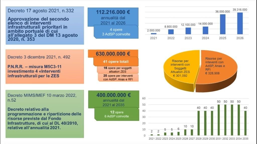 Il Rapporto descrive gli interventi del Mims previsti dal Piano Nazionale di Ripresa e Resilienza (Pnrr) e dal Piano Nazionale Complementare (Pnc) per lo sviluppo del sistema portuale e della logistica, nonché le riforme per il settore realizzate o avviate.