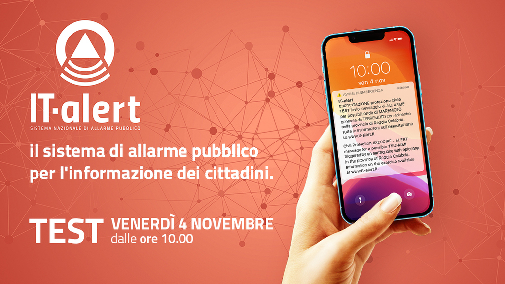 Nell’ambito dell’esercitazione - prosegue il comunicato -, venerdì 4 novembre verrà testato il sistema di allarme pubblico IT-alert per l’informazione dei cittadini attraverso la tecnologia cell broadcast, attualmente in fase di sperimentazione.  Nello specifico, i telefoni cellulari di coloro che si trovano nelle aree potenzialmente coinvolte dall’onda di maremoto potrebbero ricevere, dopo le ore 10.00, un messaggio di test, introdotto dal disclaimer Esercitazione di protezione civile, accompagnato da una suoneria dedicata. Seguirà un secondo messaggio con l’avviso della conclusione del test.