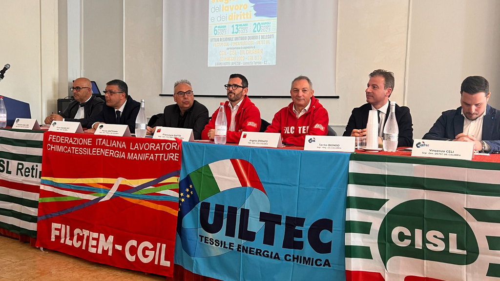 Si è tenuto questa mattina a Lamezia Terme l’attivo regionale unitario dei quadri e delegati Filctem CGIL, Femca/Flaei CISL e Uiltec UIL in vista delle mobilitazioni nazionali del 6, 13 e 20 maggio. Presenti i segretari confederali Angelo Sposato, Enzo Musolino e Santo Biondo, oltre che i segretari generali delle categorie Francesco Gatto (Filctem CGIL), Nicola Santoianni (Femca CISL), Antonino Mallone (Flaei CISL) e  Vincenzo Celi (Uiltec UIL). Lo riporta un comunicato delle tre sigle sindacali.