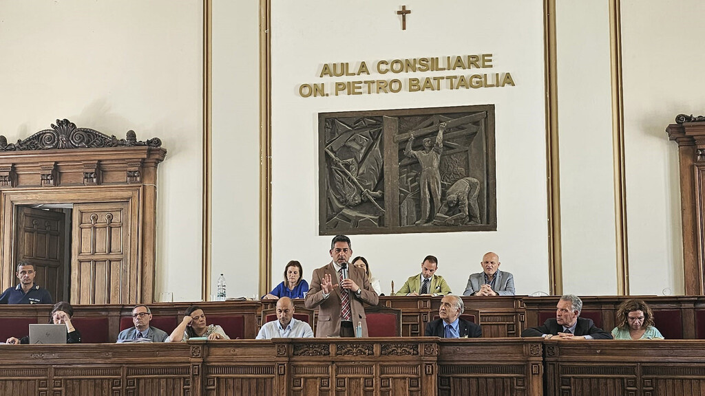 l'intervento del consigliere Giuseppe Giordano che ha auspicato «la messa a